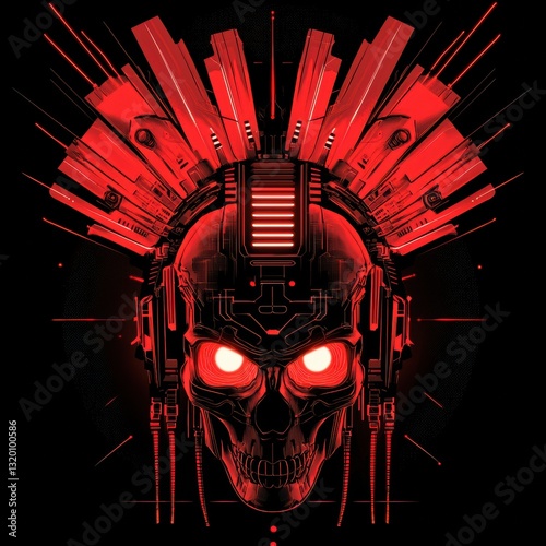 The watermark will not be included on Wall mural.: Glowing robotic skull design with exposed circuit elements and futuristic aesthetic