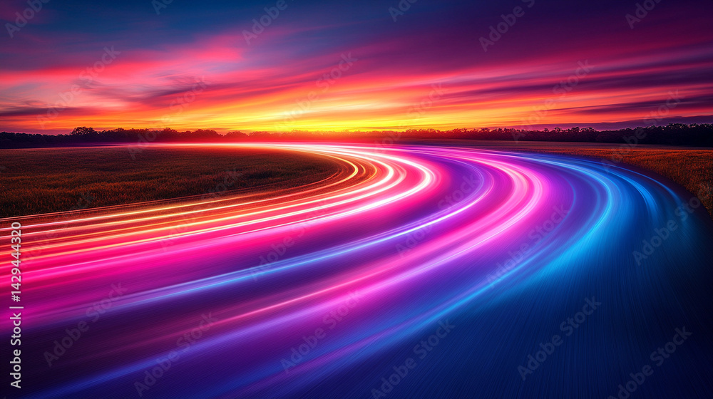 The watermark will not be included on Wall mural.: Glowing round illuminated lines with motion blur represent futuristic speed connectivity and infinit