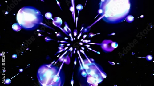 The watermark will not be included on Wall mural.: Glowing spheres forming a complex structure on a black background - abstract motion graphics concept -