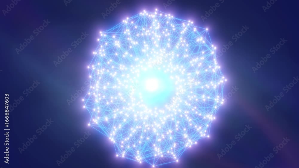 The watermark will not be included on Wall mural.: Glowing spherical digital structure with radiant center, visualizing complex data networks and energ