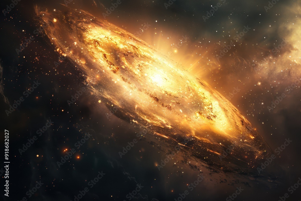 The watermark will not be included on Wall mural.: Glowing spiral galaxy in deep space with stars and cosmic dust