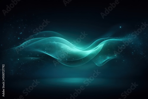 Wall mural glowing teal waves and particles swirl in a dark, abstract space, creating an ethereal and futuristi - Wall murals Wall mural glowing teal waves and particles swirl in a dark, abstract space, creating an ethereal and futuristi - Wall murals