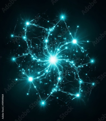 The watermark will not be included on Wall mural.: Glowing turquoise light pattern with connecting lines