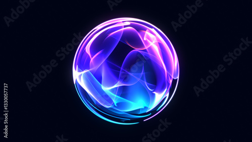 The watermark will not be included on Wall mural.: Glowing vibrant particle 3d sphere in the universe - abstract technology, science, engineering, and a