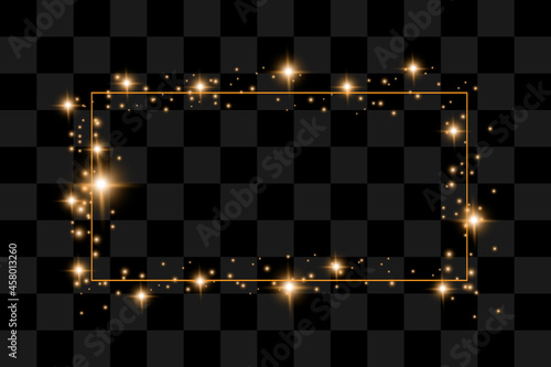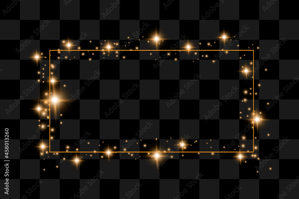 Wall mural glowing vintage gold frame with shadows isolated on transparent background. rectangular frame with l - Wall murals Wall mural glowing vintage gold frame with shadows isolated on transparent background. rectangular frame with l - Wall murals