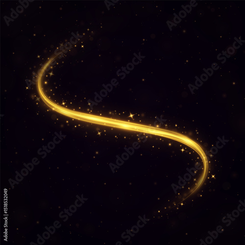 Glowing wavy trail with sparkling particles on a transparent background - luminous lines flow smoothlWall mural