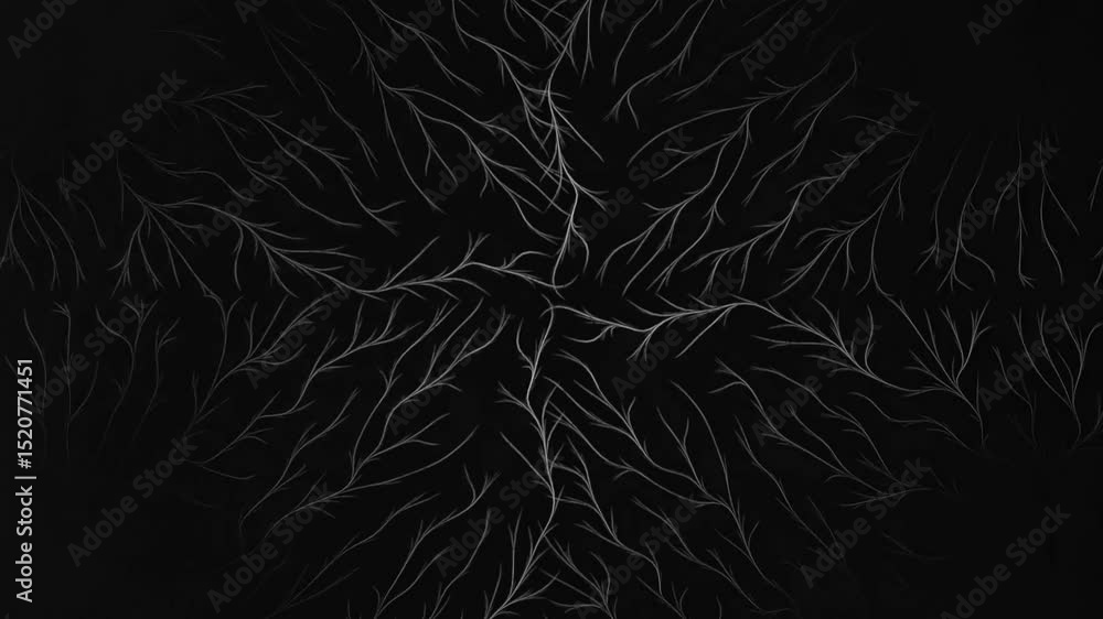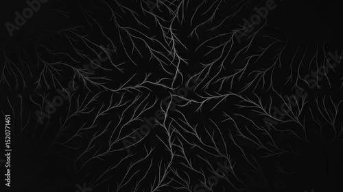 The watermark will not be included on Wall mural.: Glowing white neural branch pattern radiating symmetrically from dark center - abstract energy flow,