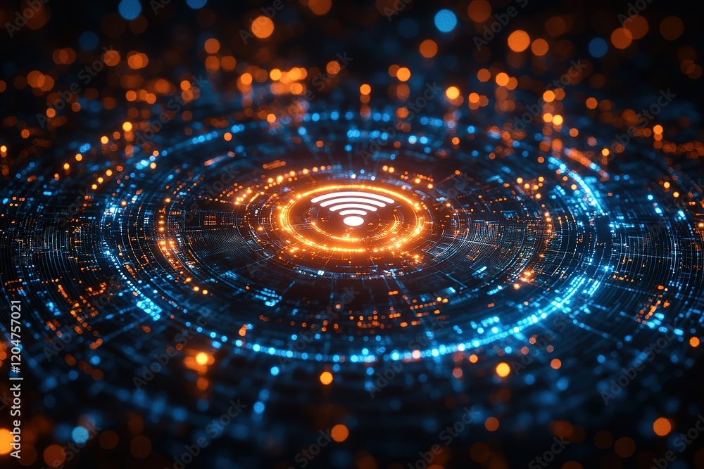 Glowing wifi symbol in a futuristic digital network - abstract technology concept - Wall mural