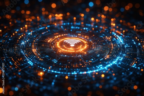 Wall mural glowing wifi symbol in a futuristic digital network. abstract technology concept. - Wall murals Wall mural glowing wifi symbol in a futuristic digital network. abstract technology concept. - Wall murals