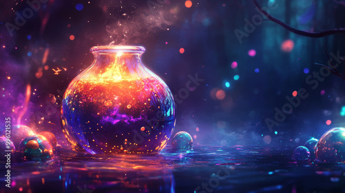 Wall mural glowing witchs brew is overflowing with magical bubbles, creating mesmerizing scene filled with vibr - Wall murals Wall mural glowing witchs brew is overflowing with magical bubbles, creating mesmerizing scene filled with vibr - Wall murals