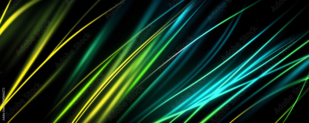 Wall mural glowing yellow and green lines on a black background with a futuristic and tech-inspired design. the - Wall murals Wall mural glowing yellow and green lines on a black background with a futuristic and tech-inspired design. the - Wall murals