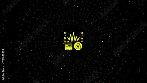 Wall mural : Glowing yellow icon of a server with a lock and a waveform inside a circle against a dark background