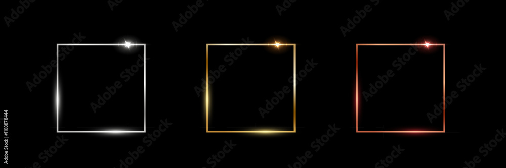 Gold, silver and bronze square frames - metal thin photo or picture frames isolated on black backgrouWall mural