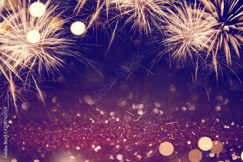 Wall mural gold and dark fireworks and bokeh in new year eve and copy space. abstract background holiday. - Wall murals Wall mural gold and dark fireworks and bokeh in new year eve and copy space. abstract background holiday. - Wall murals