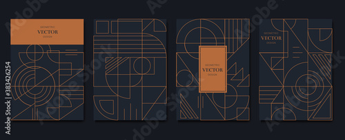 Wall mural gold and luxury invitation card design vector. abstract geometry frame and art deco pattern backgrou