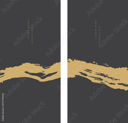 The watermark will not be included on Wall mural.: Gold brush stroke element with black background vector - abstract art pattern texture