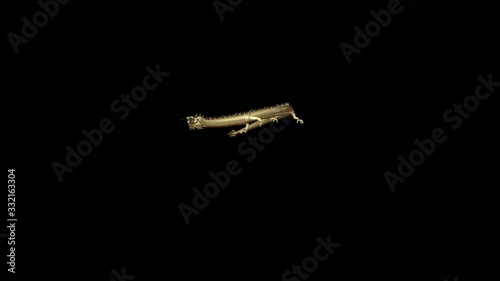 Gold chinese dragon full body move fast from far to near camera with 3d rendering include alpha pathWall mural