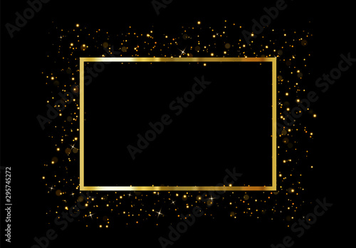 Wall mural gold frame with glowing lights and sparkle bokeh effects, isolated on background. shining golden rec