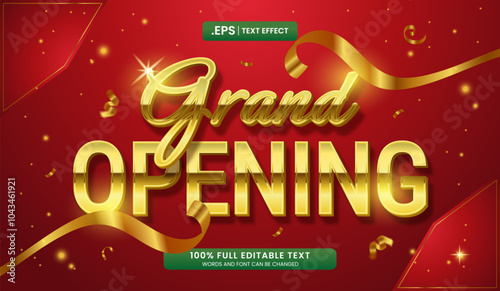 Wall mural gold grand opening text effect with ribbons and confetti on red background. editable 3d text effect
