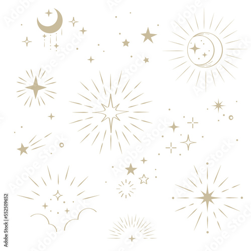 The watermark will not be included on Wall mural.: Gold moon and star design elements set
