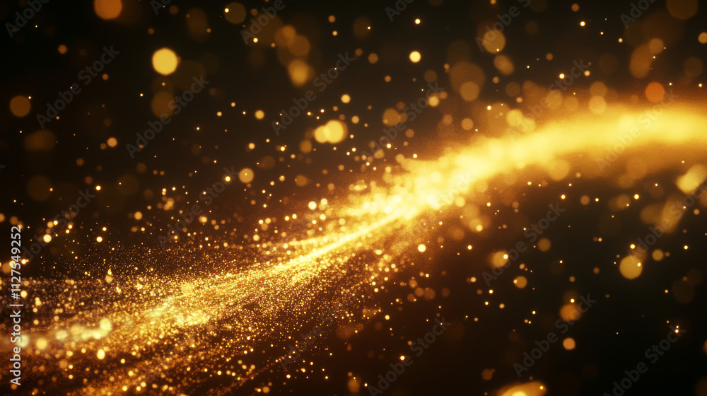The watermark will not be included on Wall mural.: Gold star with magic curve trail on transparent background - realistic vector illustration set of bri