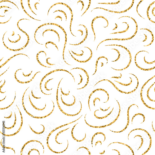 Wall mural gold wave seamless pattern. draw golden swirl glitter on white background. abstract wavy texture. re