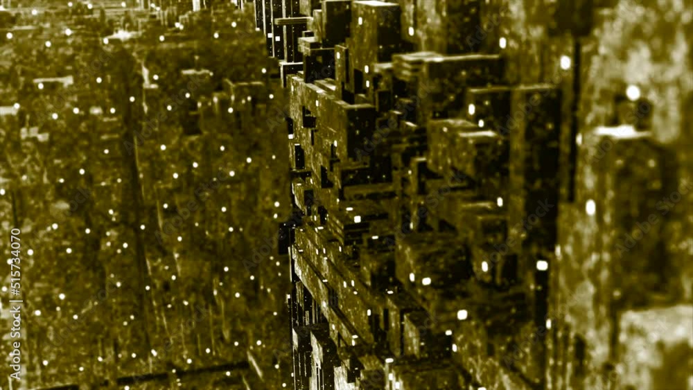 Wall mural : Golden and green tunnel - motion - shiny corridors made in 3d format are turned over and twisted in dif