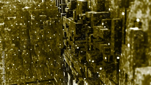 Wall mural golden and green tunnel. motion.shiny corridors made in 3d format are turned over and twisted in dif