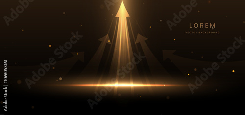 Wall mural golden arrow on dark brown background with lighting effect and sparkle.