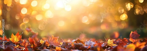 The watermark will not be included on Wall mural.: Golden autumn leaves on branch with bokeh background generative ai