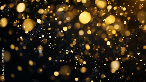 The watermark will not be included on Wall mural.: Golden background with bokeh - confetti on a black background with gold and black confetti - anniversa