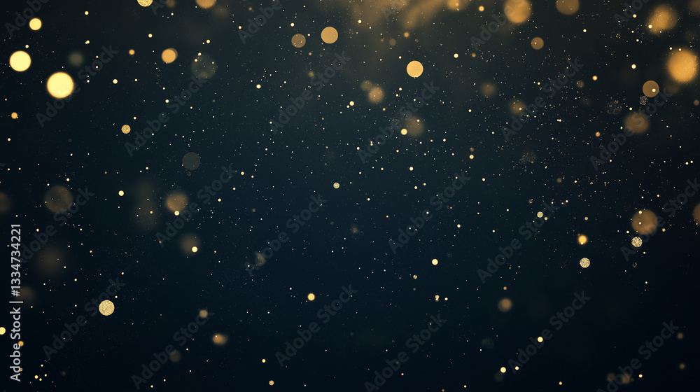 Golden bokeh delight: elegant dark background adorned with sparkling golden bokeh, perfect for addinWall mural