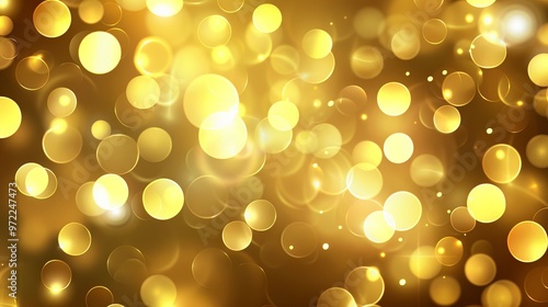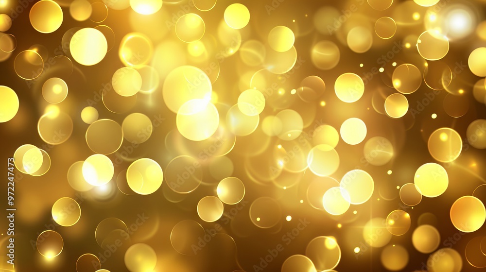 Wall mural golden bokeh lights abstract background with soft blurred glow for elegant and festive designs, perf