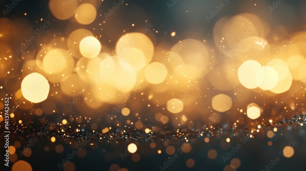 The watermark will not be included on Wall mural.: Golden bokeh lights twinkle against a dark backdrop, adding warmth and magic to the atmosphere of a