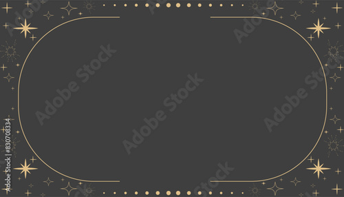 The watermark will not be included on Wall mural.: Golden celestial minimal esoteric frame, thin line border, mystyc linear decoration with dots, moon,