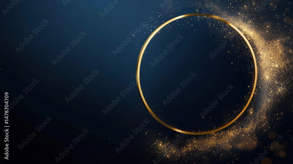 Golden circle frame on dark blue background with glittering particles elegant design element for invWall mural