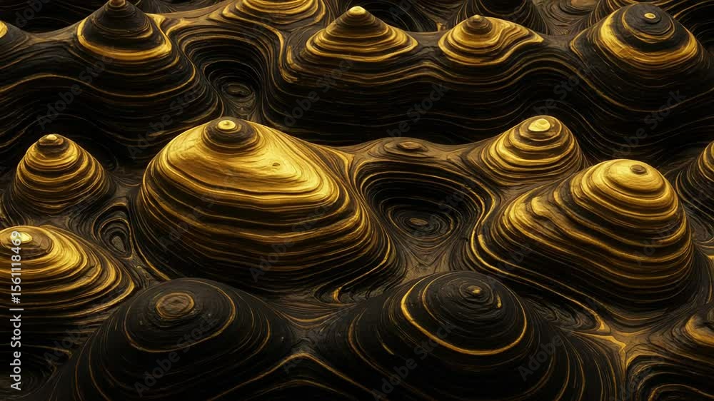 The watermark will not be included on Wall mural.: Golden cone structures rising from black abstract textured surface background
