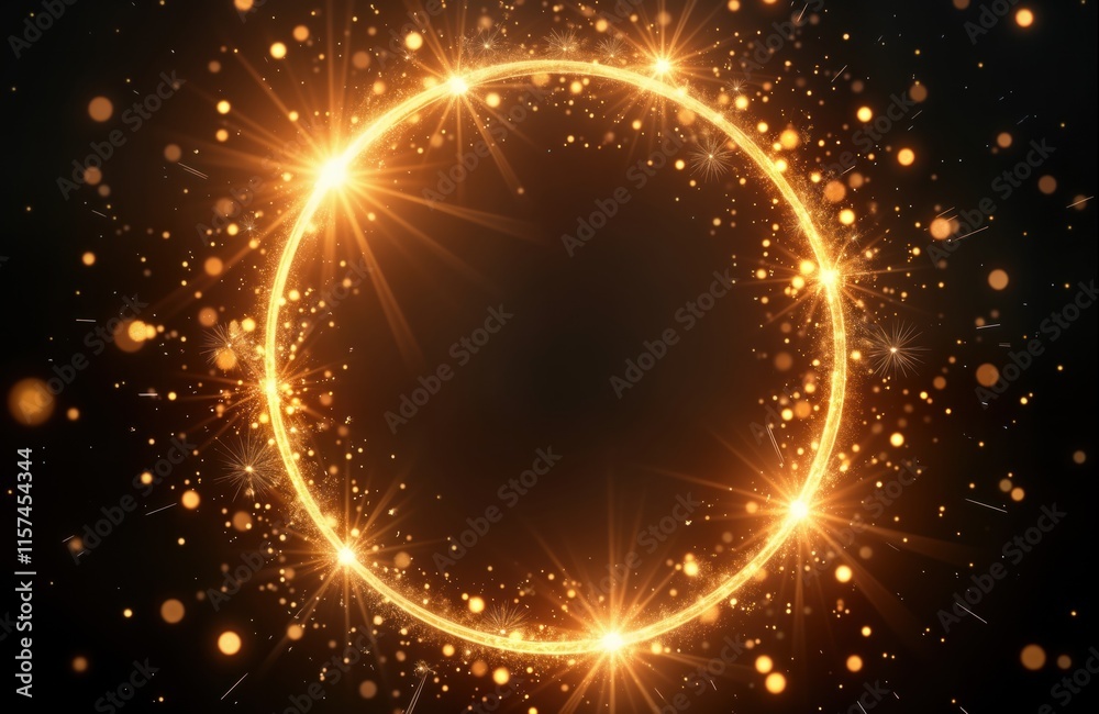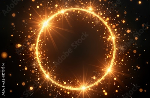 Golden glitter circle design on dark background - sparkling light particles form circle frame - brightWall mural