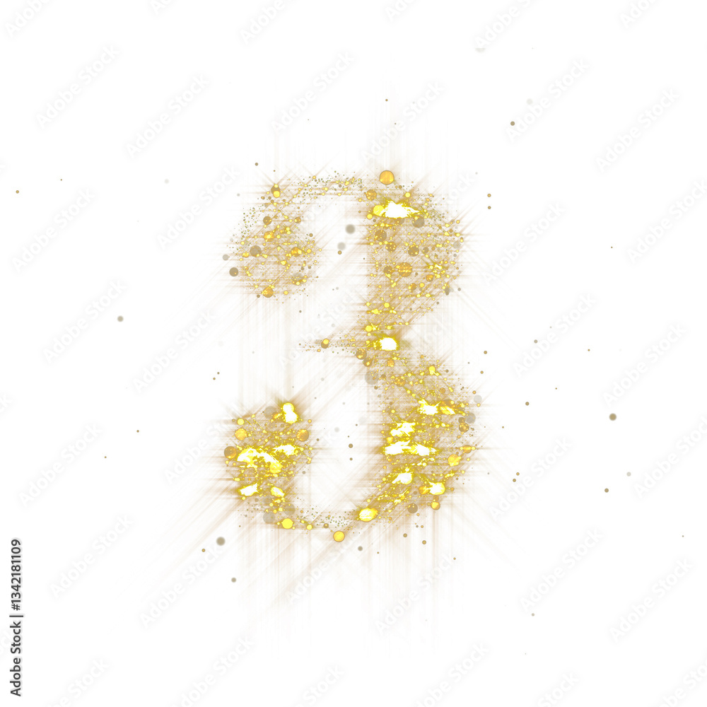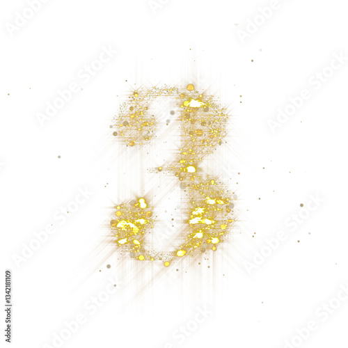 Wall mural golden glitter number 3. number three of shimmering sequins and glow sparkles on transparent backgro