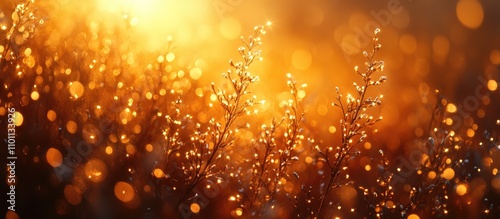 Wall mural : Golden glittering abstract background with blurred sunlight and shimmering bokeh effect on delicate