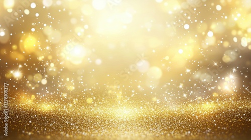 Wall mural : Golden glittering bokeh background featuring shimmering sparkles and defocused circles ideal for fes