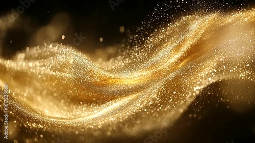 The watermark will not be included on Wall mural.: Golden glittering particles flowing across black background animation loop