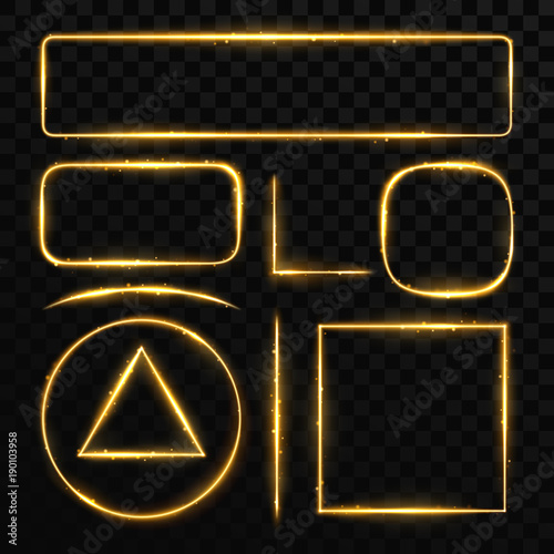 Wall mural golden glowing frames with light glittering effect and sparks vector set