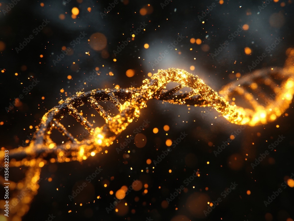 The watermark will not be included on Wall mural.: Golden helix structure with glowing particles on dark background offering a unique visual for scienc