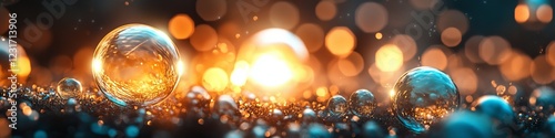 The watermark will not be included on Wall mural.: Golden light and bokeh background with abstract glowing, sparkling particles, and defocused circles