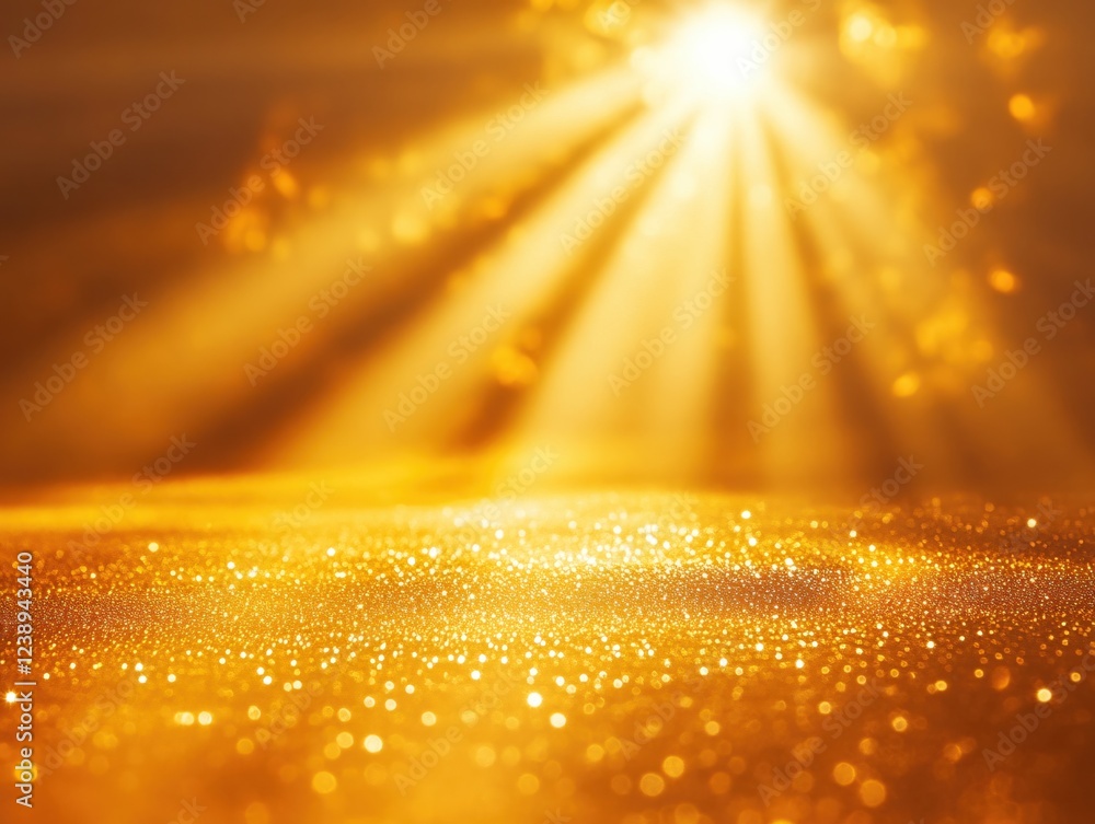 The watermark will not be included on Wall mural.: Golden light rays shining down on a shimmering surface with bokeh and bright glow effect