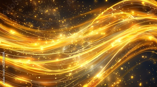 Wall mural golden light trails with sparkling effects on dark background for use in design and creative project