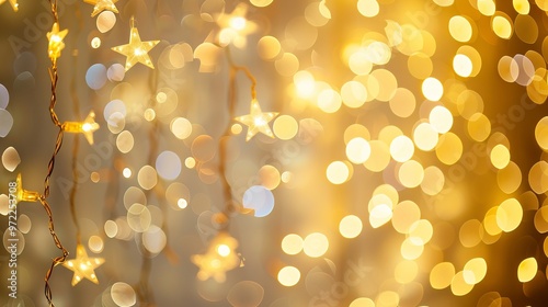 Wall mural : Golden lights with star bokeh background creating a festive and elegant atmosphere for celebrations