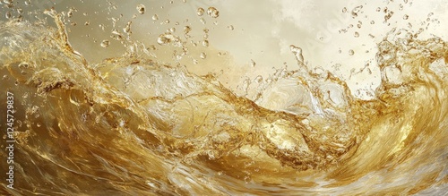Wall mural golden liquid droplets splashing through dark amber water waves creating dynamic motion with smooth  - Wall murals Wall mural golden liquid droplets splashing through dark amber water waves creating dynamic motion with smooth - Wall murals