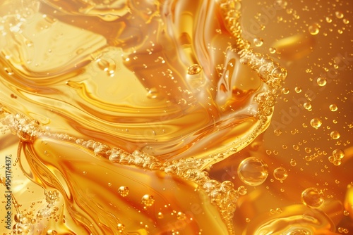 Wall mural golden liquid honey or syrup with bubbles abstract background